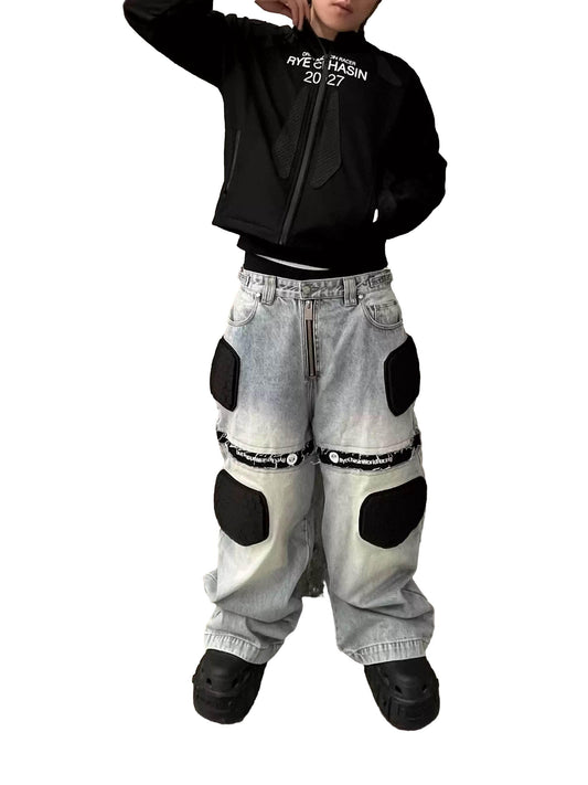 *RYECHASIN* 2024 FW WASHED BLUE RACING BAGGY JEANS.