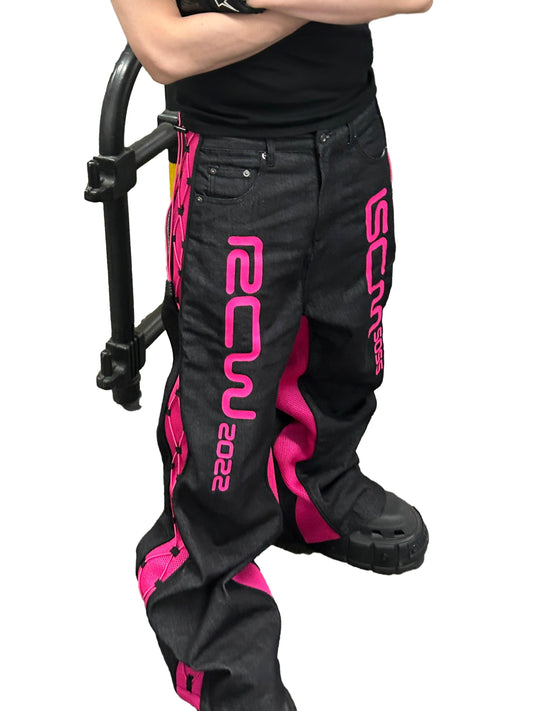 *RYE CHASIN *RACING RED/PINK JEANS RAW DENIM