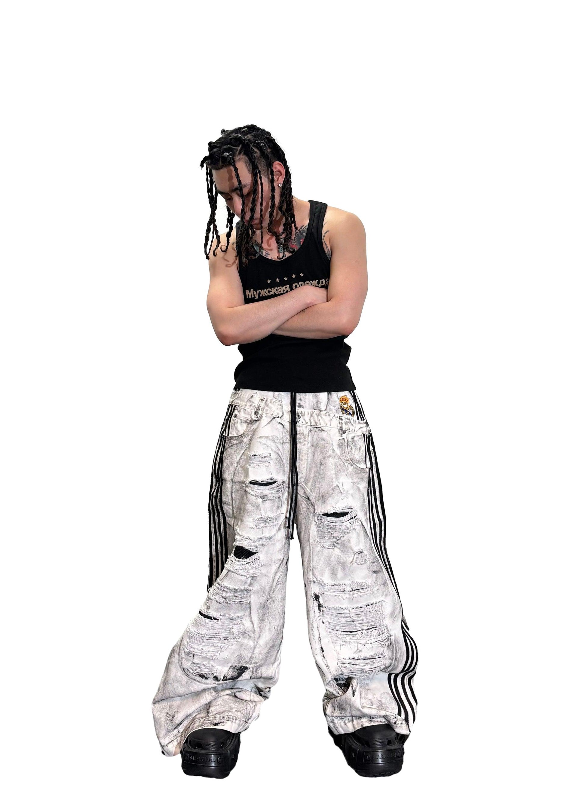 *RYE CHASIN ."FOOTBALL PUNKS"! WHITE CANVAS PANTS