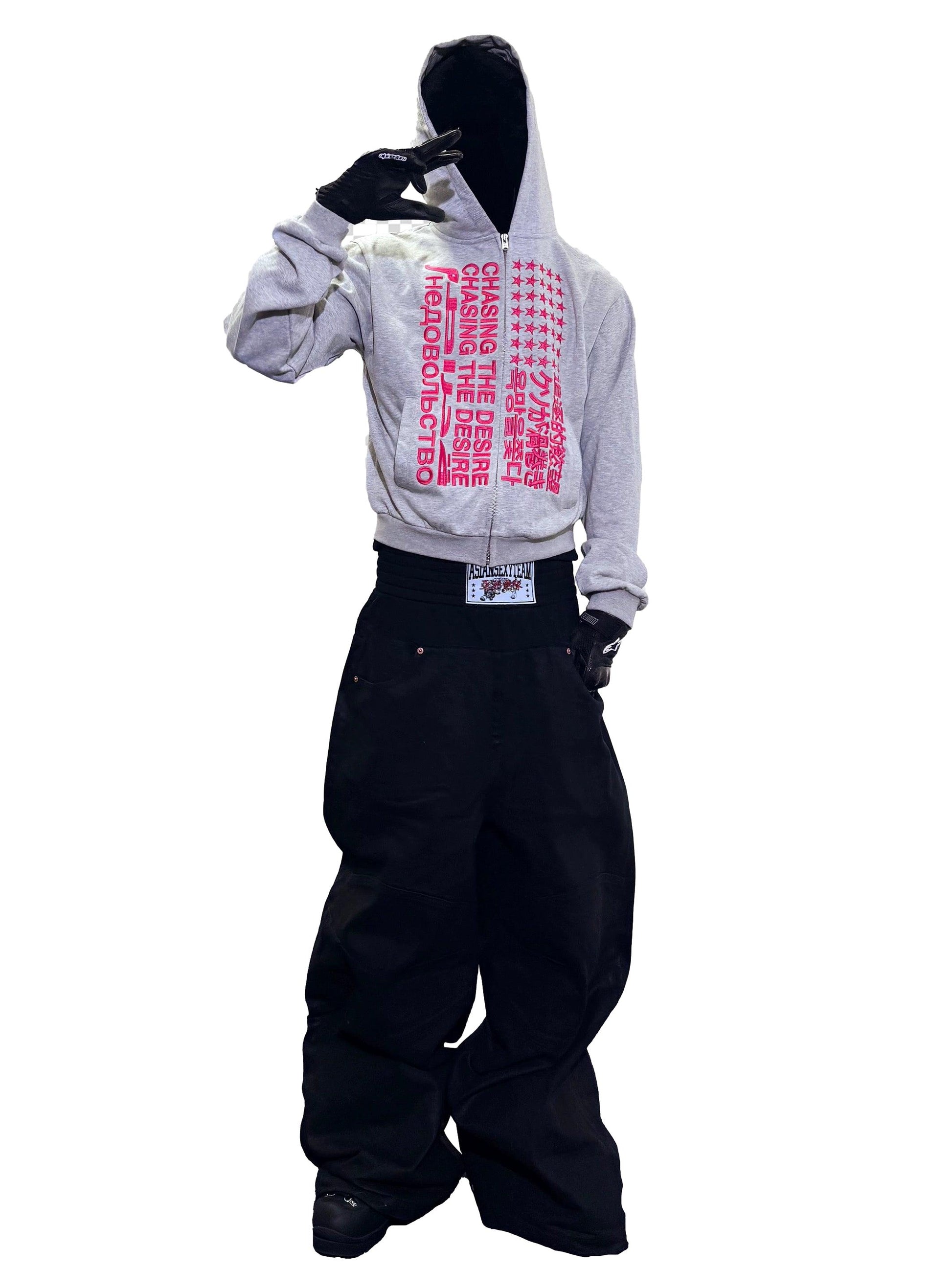 *RYECHASIN "追逐的慾望" "CHASIN THE DESIRE" ZIP-UP HOODIE GREY&PINK