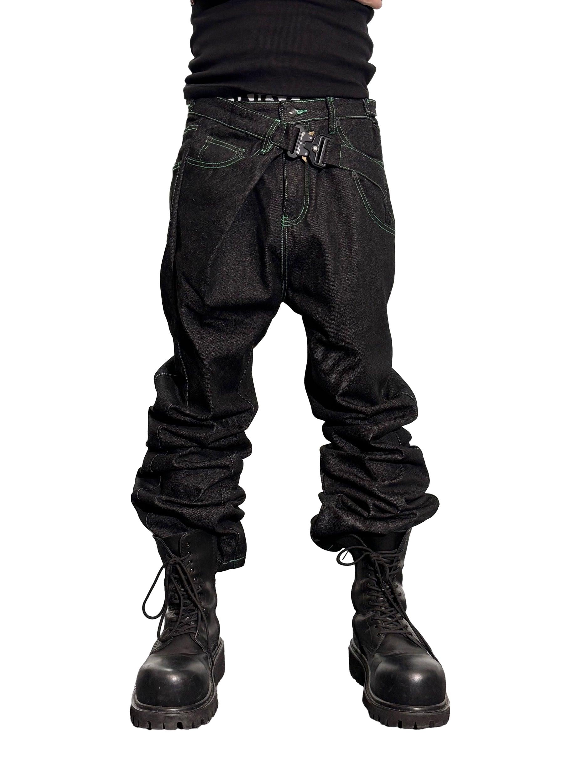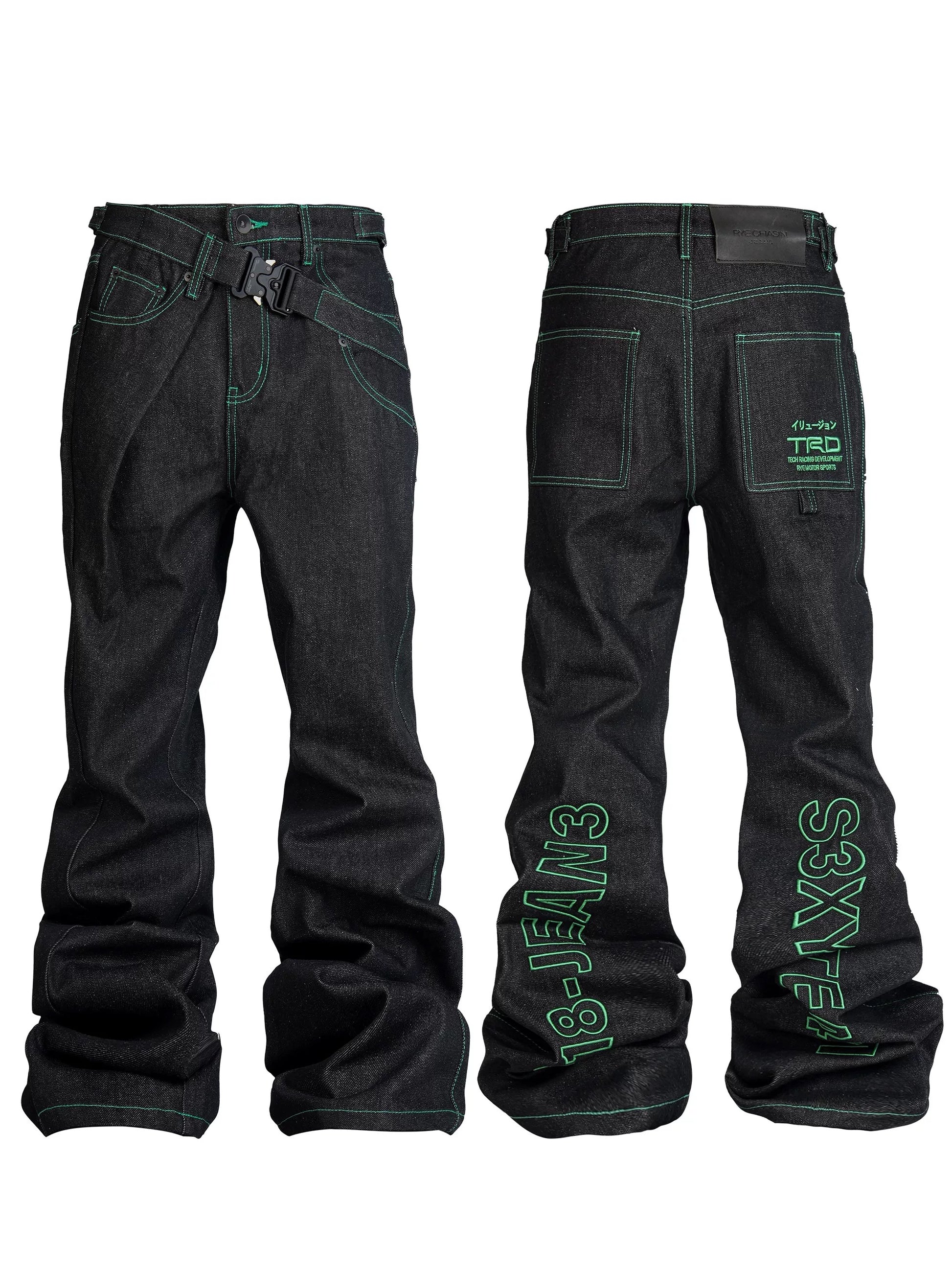 *RYECHASIN EMBROIDERED UNSLICKED RAW COLOR RAW DENIM TROUSERS